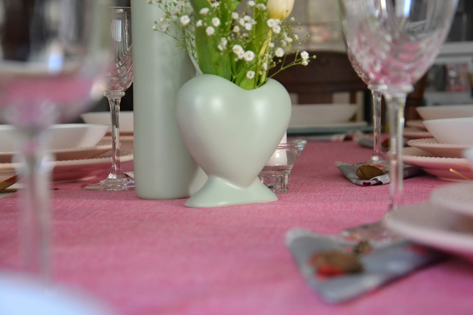 E como prometido aqui está, a mesa com todos os detalhes e pormenores, pensam que idealizei a mesa e de como a iria decorar?... Não, abri o louceiro e escolhi, foi o que saiu na hora, sabia mais ou menos os tons que queria utilizar e assim foi. Uma mesa, feminina, romântica e simples, tal e qual como eu gosto e os talheres dourados a dar o toque necessário de glamour que nestas ocasiões também é muito importante.