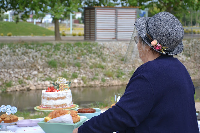 Foi no passado Domingo que reunimos a família numa festa surpresa ao ar livre para festejar o aniversário da minha avó, a verdade é que tivemos receio de o fazer por vários motivos, muito mais pelo que estamos a viver. Mas depois de muito pensar, com ajuda fizemos acontecer e a minha avó teve direito a um piquenique surpresa onde juntamos toda a família com as devidas distâncias na maior parte do tempo e claro andamos quase sempre de máscara. Não consigo descrever em palavras o que senti quando vi a minha avó tão feliz por ver tudo o que estava a acontecer, com o maior sorriso do mundo a ver a festa surpresa que lhe tínhamos preparado sem ela nunca ter desconfiado de nada, as lágrimas vieram me aos olhos não vou mentir, foi muita emoção. E do combinar ao fazer acontecer foram 3/4 dias, escolhi a palete de cores que queria utilizar na decoração, tirei ideias do tema que queria e tudo se alinhou todos na família levaram algo para comer, uns os salgados, outros os doces, outros as bebidas e nada faltou. O tema escolhido foi um piquenique em versão campestre, com flores óbvio e muito rosa, verde e algum dourado. Sou suspeita mas adorei o resultado final, ficou tudo muito simples, bonito, e ao mesmo tempo uma mesa prática como só um piquenique pede e claro para mim a cereja no topo do bolo foi a toalha de renda linda, com flores rosa bordadas e a renda tinha sido a minha avó a fazer, depois umas bandeirolas a dar o ar de festa, boa comida e boa música, tudo se conjugou para uma tarde incrível para festejar os 85 anos da melhor avó do mundo. Um obrigado especial à minha tia que fez de tudo para que a minha avó não desconfiasse de nada e que fez a minha avó sair de caso dizendo-lhe que ia ver o mar e afinal o "mar" era outro, a família reunida após tantos meses, foi tão bom e tão especial. E claro voltar a ver os meus mais que tudo, a minha Lia e o meu Gil foi simplesmente ma-ra-vi-lho-so as saudades já eram muitas e já não aguentava estar muito mais tempo sem os ver. Não poderia pedir mais nada, só mesmo que para o próximo ano já nos possamos beijar e abraçar, pois ficaram muitos abraços e beijos por dar este ano, portanto para o próximo ano é a dobrar ou a triplicar... Agora vou me calar e mostrar todos os pormenores deliciosos desta festa surpresa mega incrível.